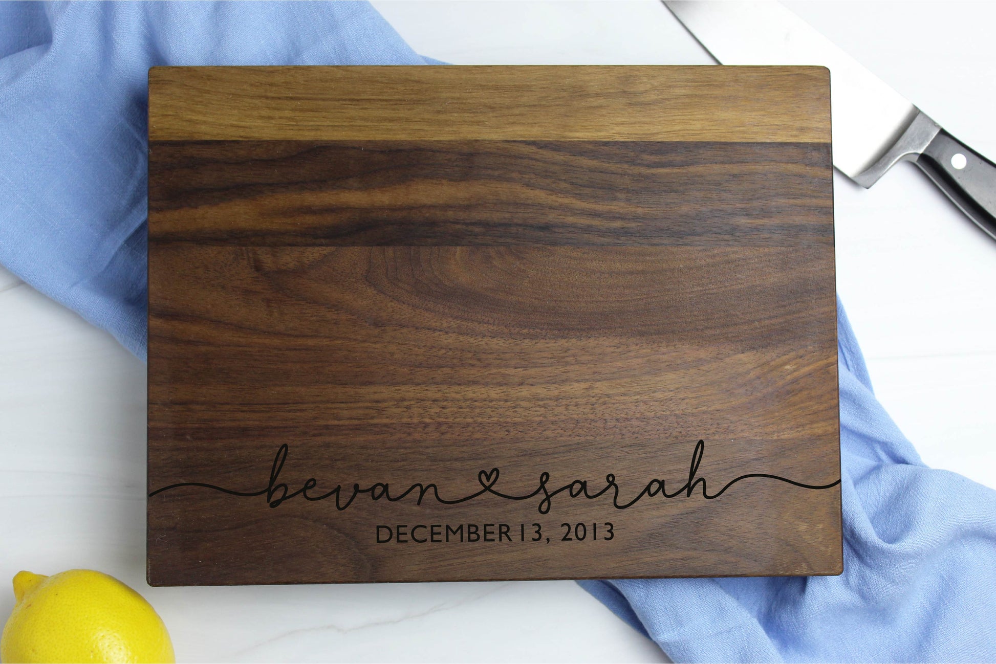This perfect wedding gift is both practical and meaningful. The Connected Names Cutting Board has a unique and personalized design, crafted with beautiful natural wood. Make it a truly special addition to the couple's kitchen.